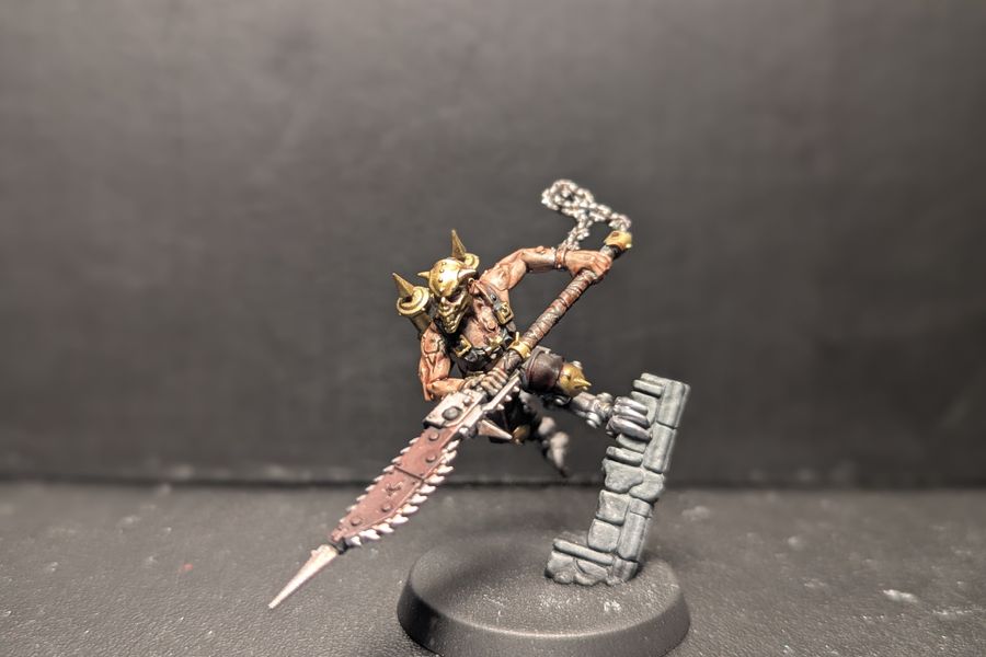 Once per turning point, when a friendly GOREMONGER operative performs the Shoot action and you’re selecting a ranged weapon, you can use this rule. If you do, until the end of that action, the following melee weapons are treated as ranged weapons with the Range 2" weapon rule: chainblade, chainglaive, great chainaxe (ignore its Brutal weapon rule), pickrippers.